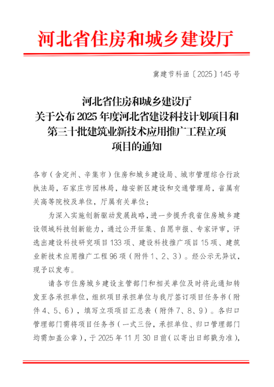 近日,河北省住房和城鄉建設廳公布2025年度河北省第三十批建筑業新技術應用推廣工程立項項目名單,渤海公司河北保定綜合管廊項目成功入選。