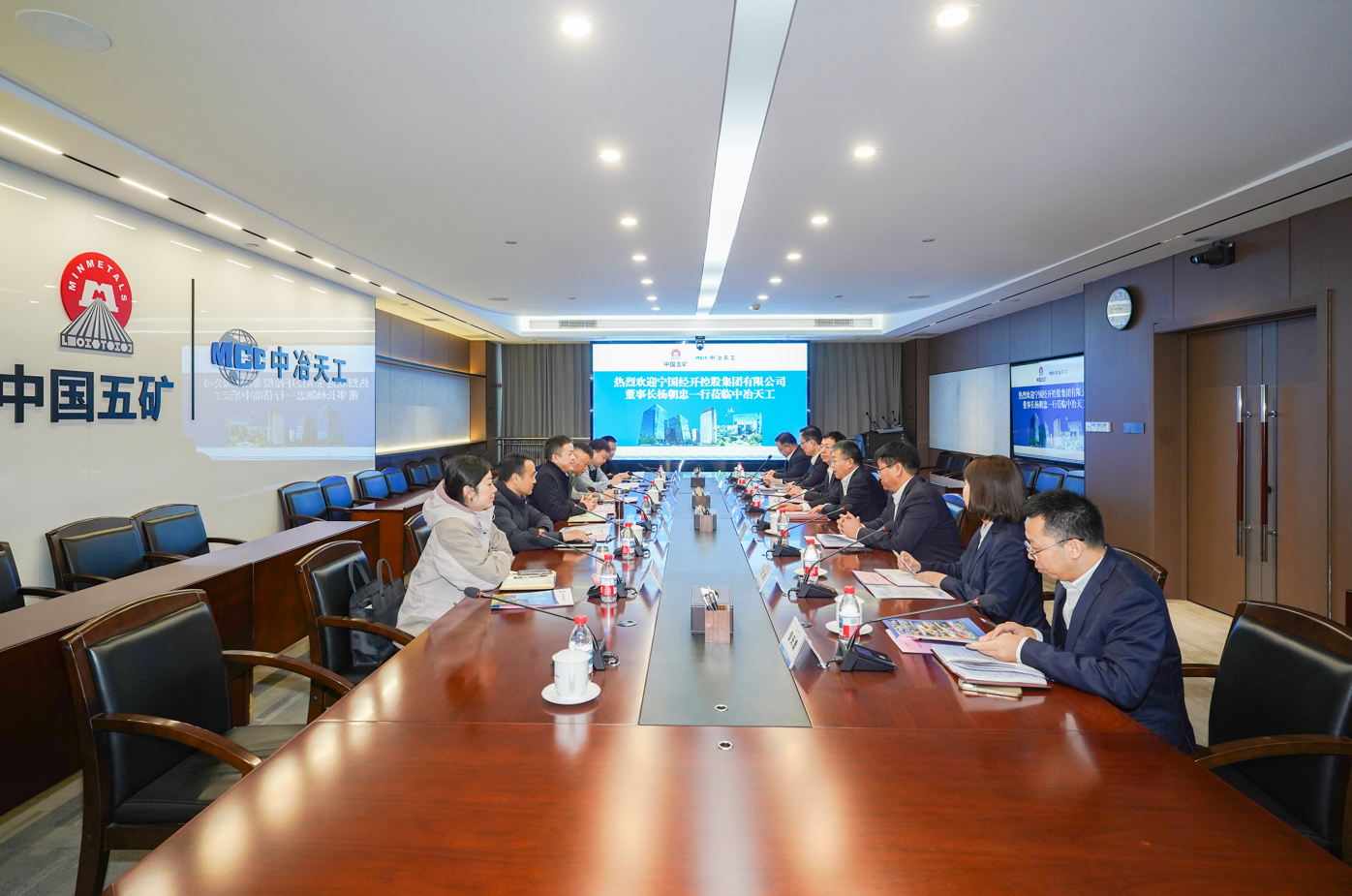 寧國經開控股集團有限公司副總經理俞仲園、副總經理高益、副總經理程福清、財務中心主任楊斐;寧國眾益新型城鎮化建設有限公司副總經理付本聰;中冶天工副總經理柴寧,以及相關人員張樹根、代琨、趙欣共同參加會談。